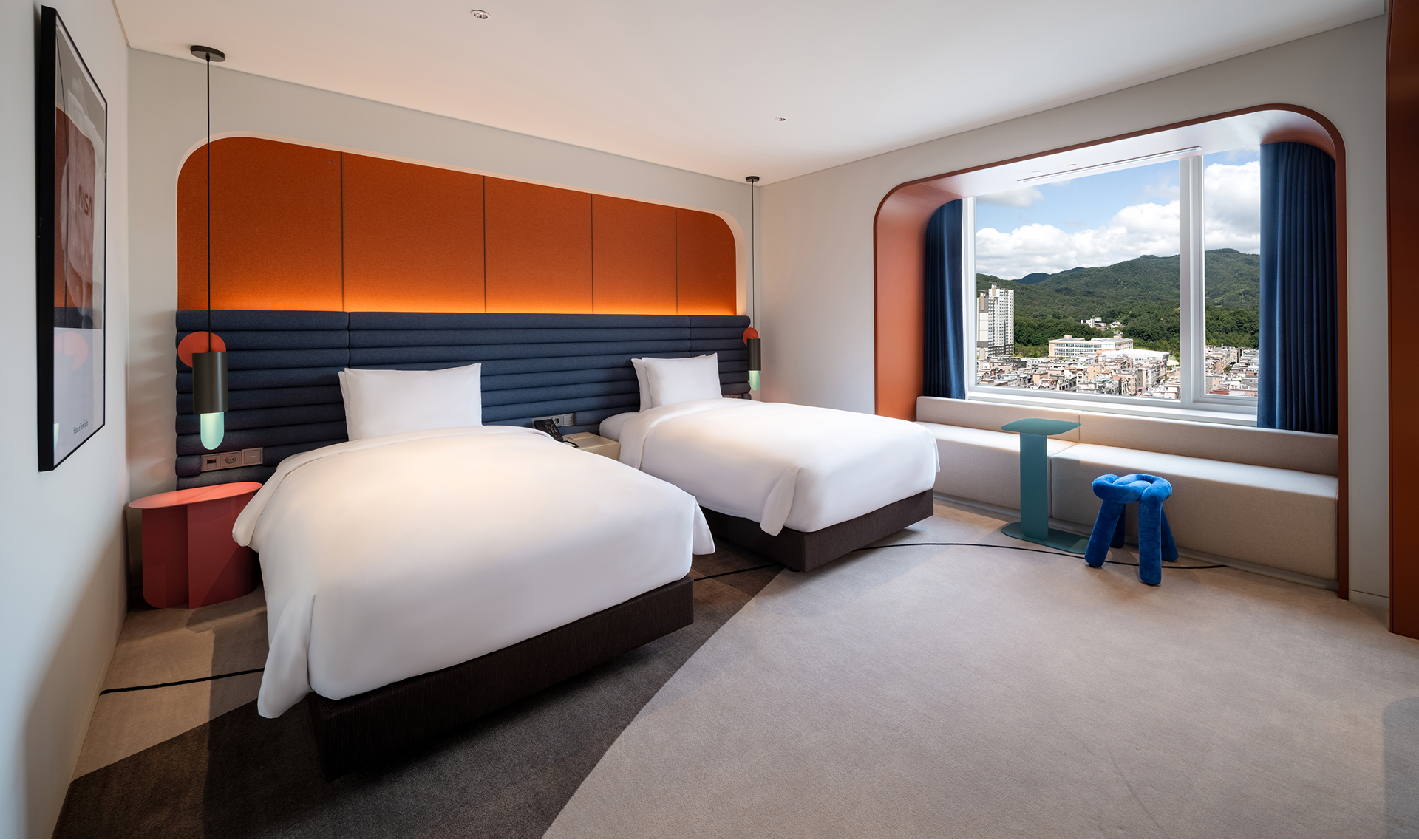 Furnished with two single beds, the Boutique Twin is perfect for trips with friends or family. Enjoy a restful stay in a space accentuated by unique, mood-enhancing lighting and thoughtful design.