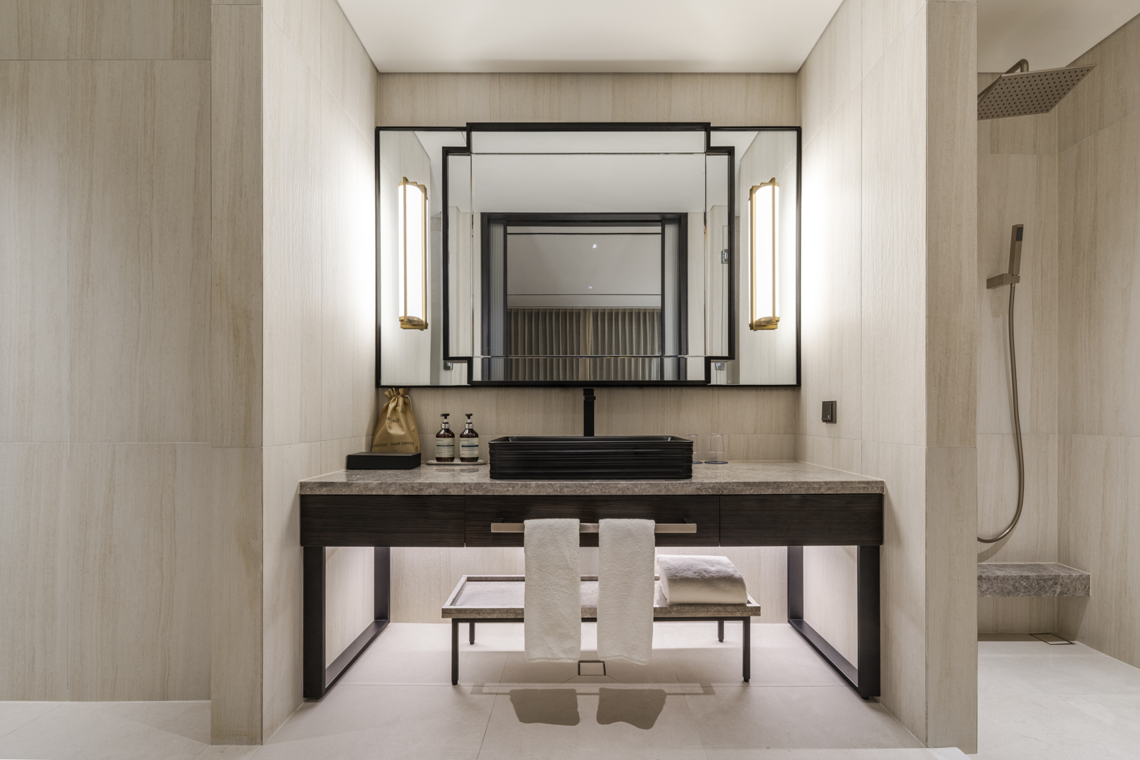 ∙ 65" LED flat-screen TV ∙ Refrigerator (90L) ∙ Personal safe ∙ Desk, sofa, chair, table mirror, stand lamp ∙ Clothing care system (Styler) ∙ Free WIFI in all rooms ∙ Daily laundry service (paid) ∙ Room amenities - wine glasses, wine opener, on-the-rocks, mug, teaspoon, shoe cleaner ∙ Beverage amenities - tea, coffee machine, 2 bottles of mineral water, electric kettle ∙ Bathroom amenities - 4 types of eco-friendly amenities, hair dryer, bidet