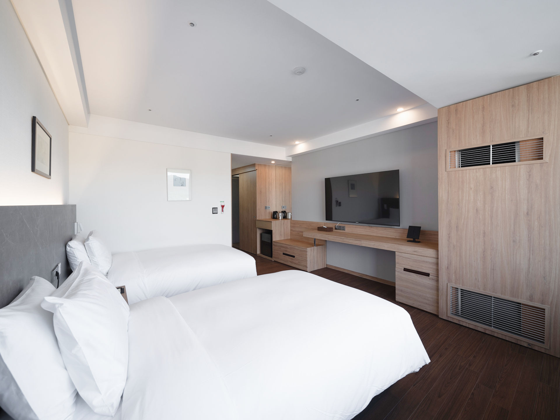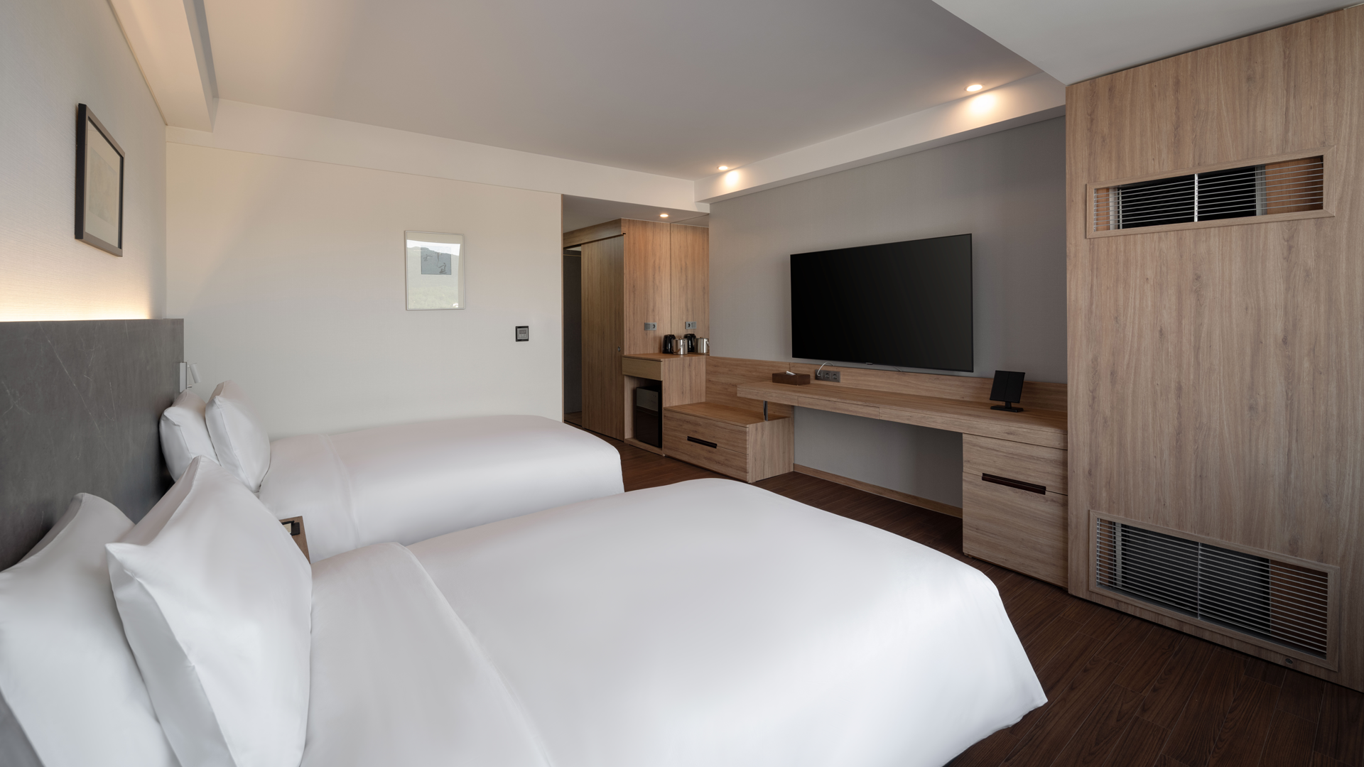 The Deluxe Twin Room, featuring two cozy single beds, is perfect for a wide range of stays — from business trips to getaways with friends or family.