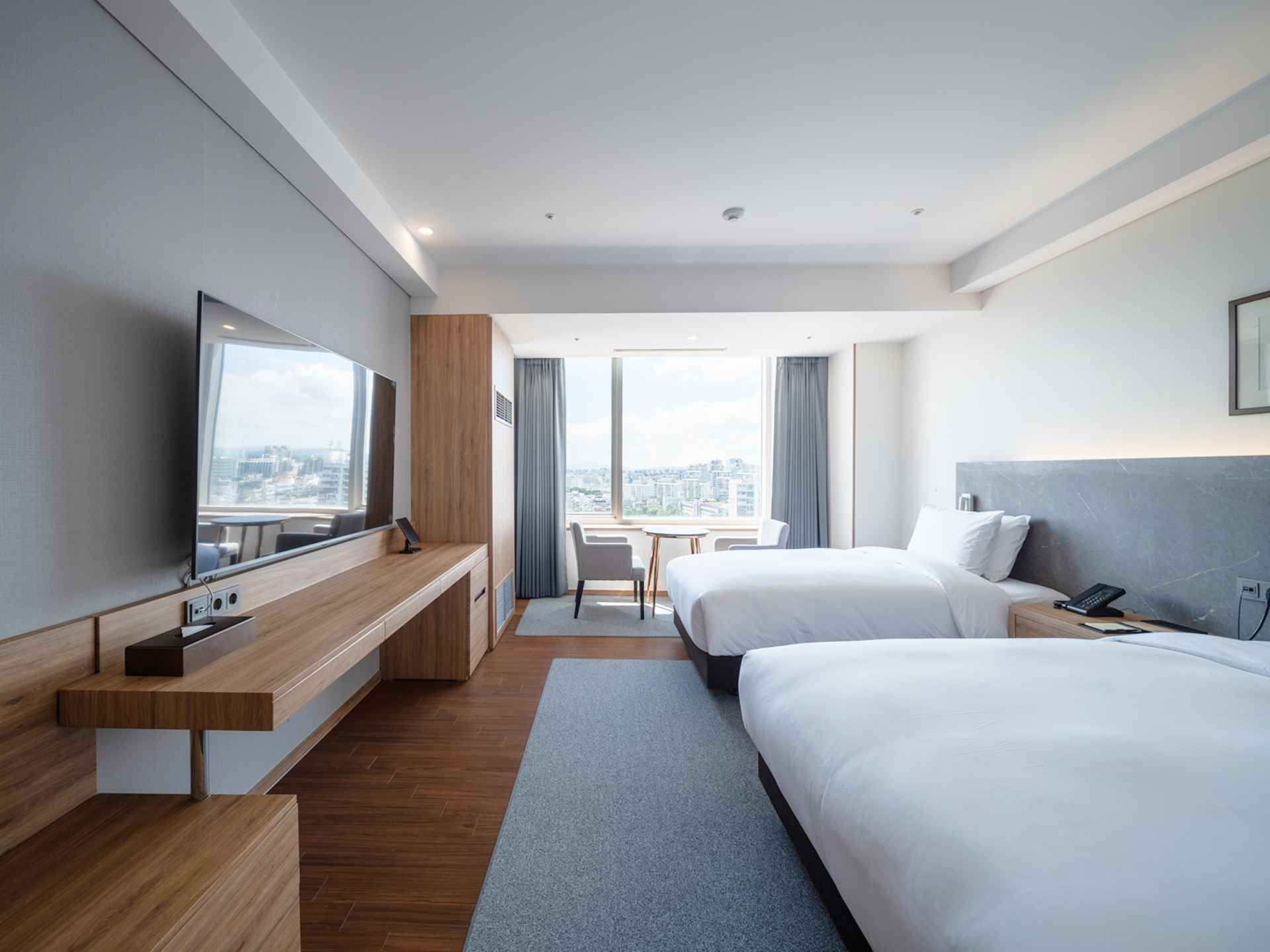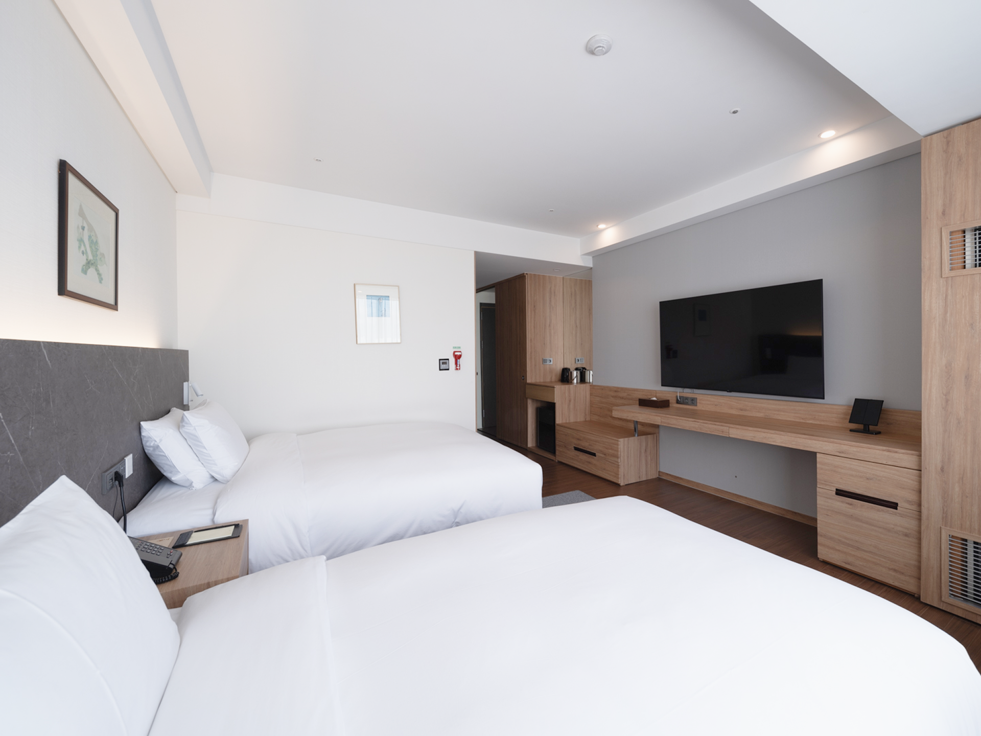 “The Perfect Space for Cherished Moments with Friends and Family” The Deluxe Family Twin Room, featuring a king-size bed and a single bed, is thoughtfully designed for families with children or friends traveling together. Its modern yet warm interior creates a cozy atmosphere, making every stay feel just like home.
